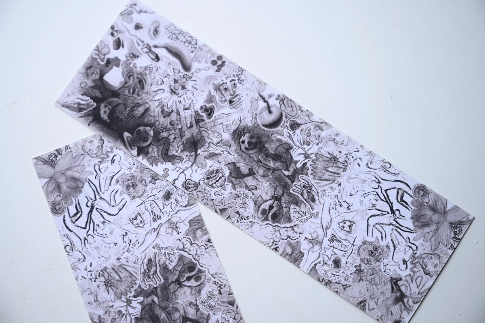 Myriad, a collage of drawings handcrafted into a double-sided bookmark with a matte finish.