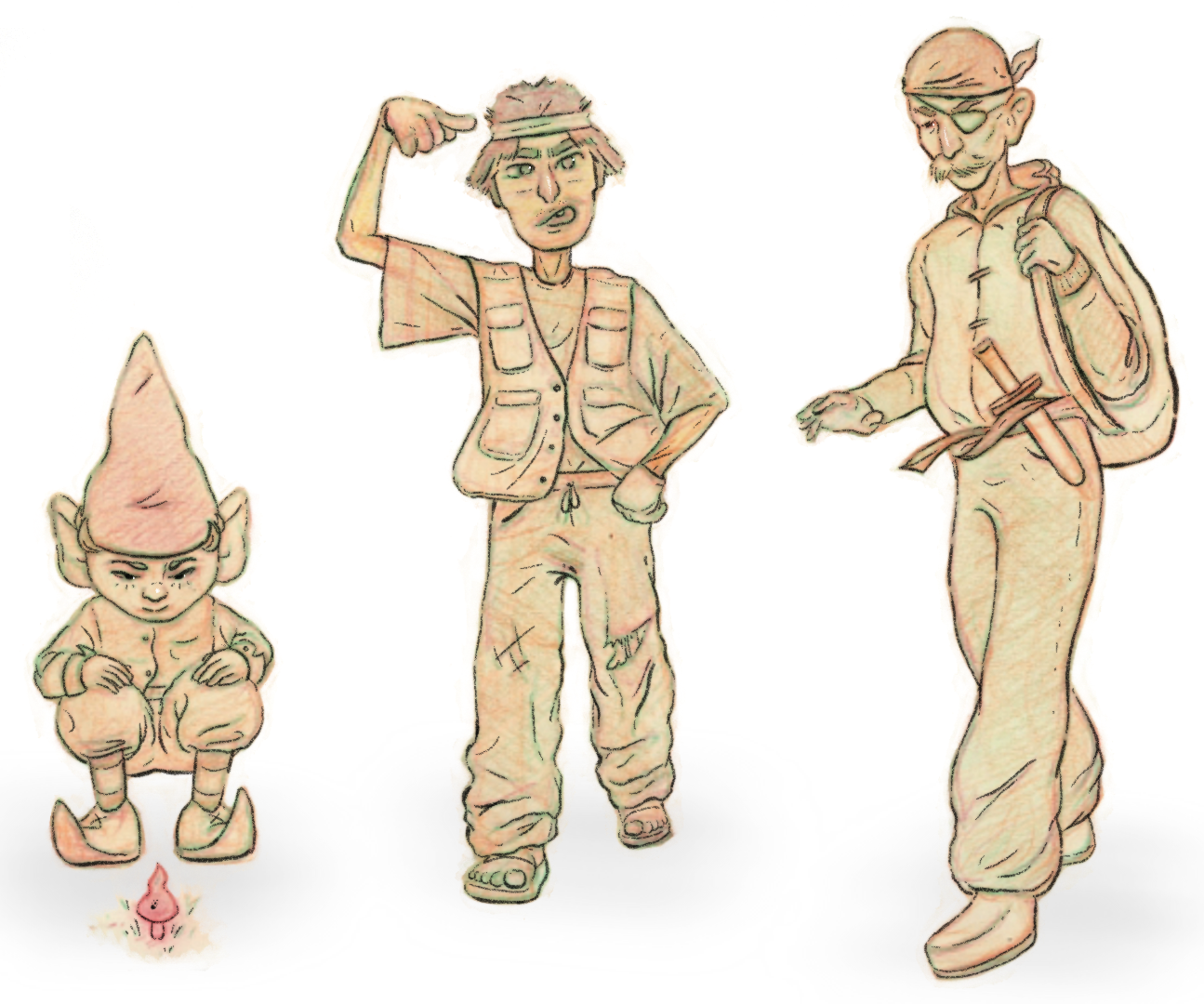 Tårevått, Concept art This piece is part of a concept for my comic “Tårevått”. In it, the protagonist, a gnome, and his pirate-like travel companion, Will, are guided through the vibrant and bustling city of Lahue by their new friend Kai.